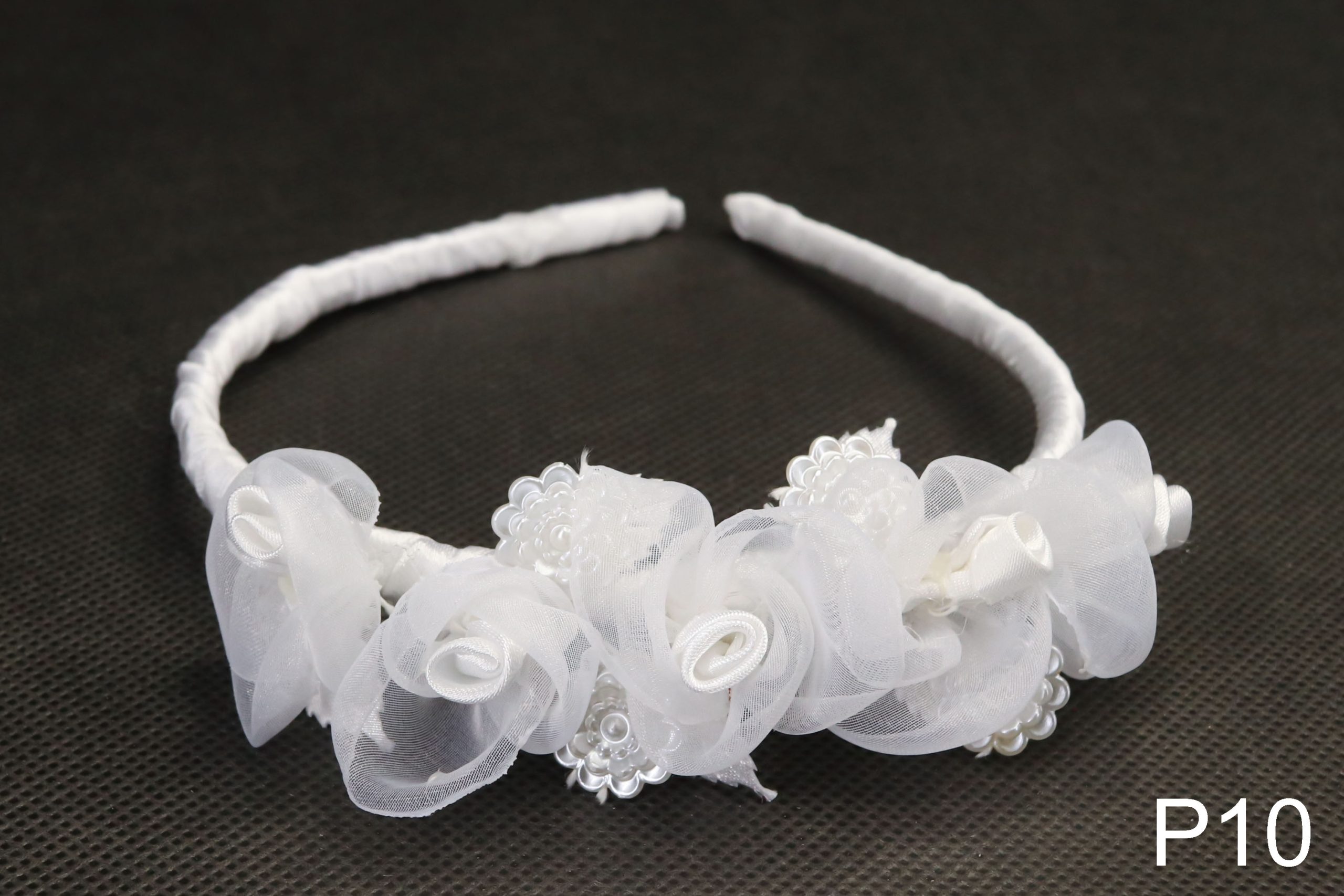 Bialutka przepaska z szyfonowych różyczek z dodatkiem kwiatuszków perłowych.