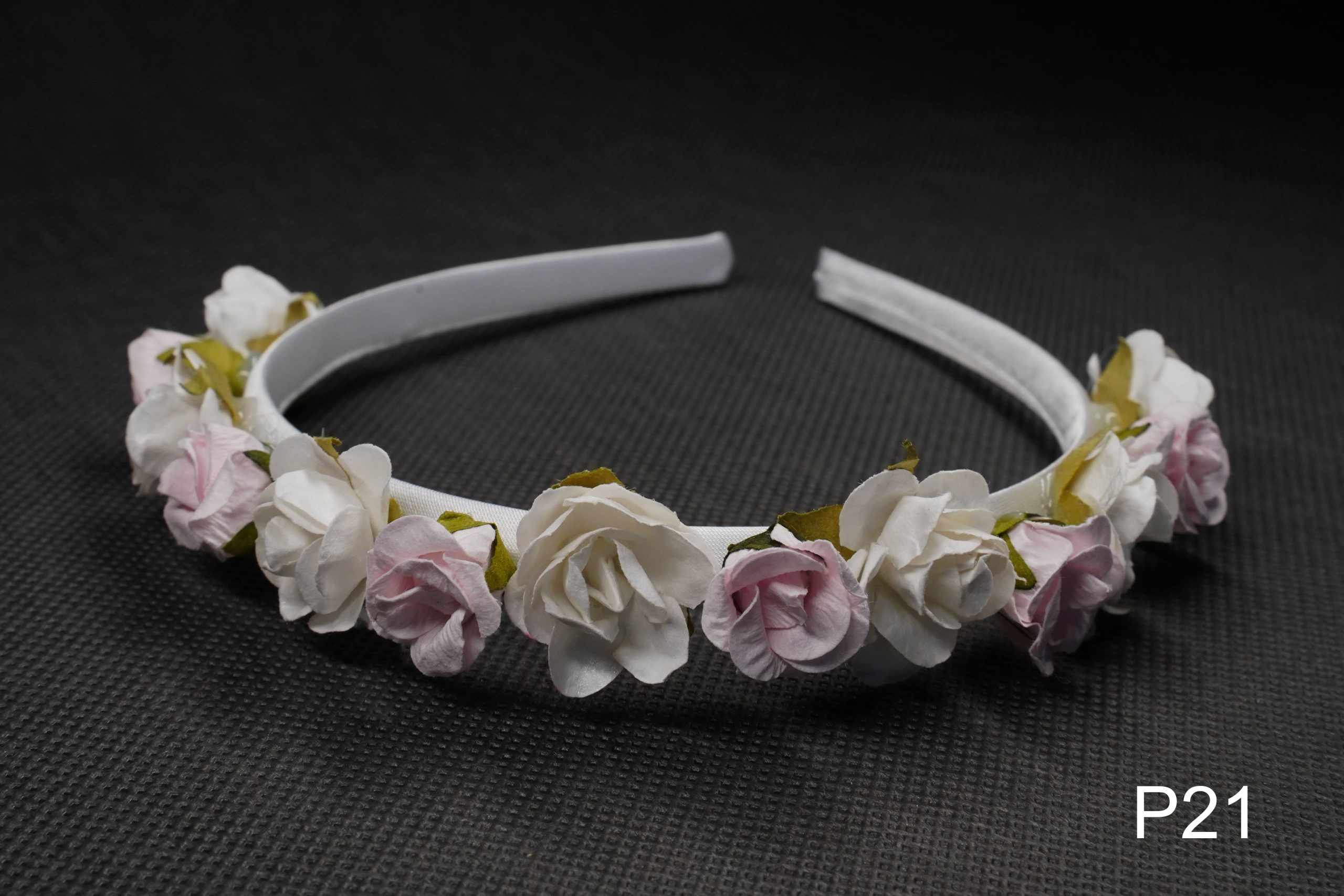 Przepaska na włosy wykonana ręcznie z delikatnych różyczek białych i różowych