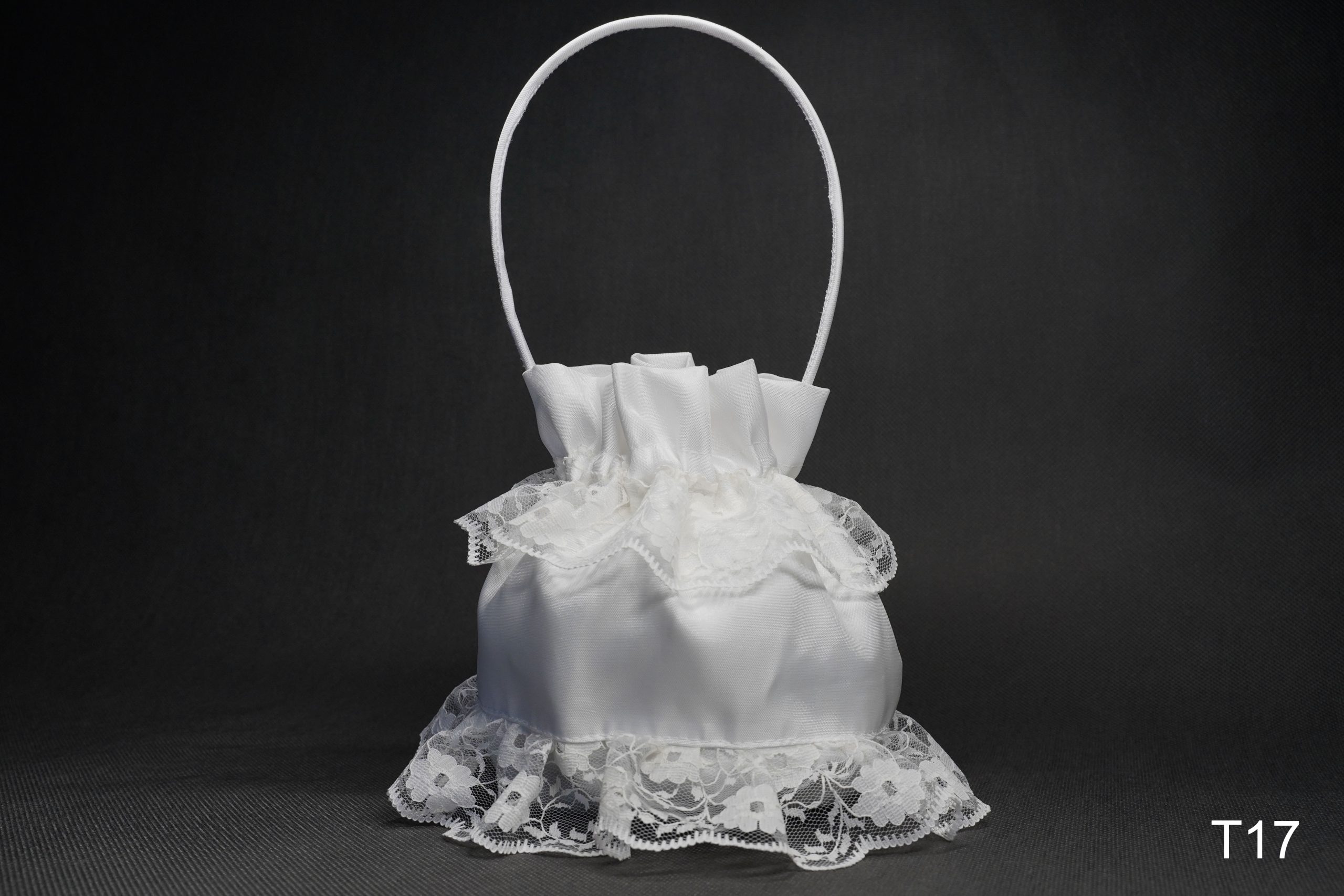Woreczek komunijny matowy z satyny z dodatkiem ozdobnej koronki.
